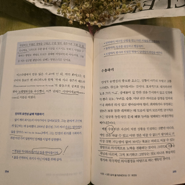 책에서는 회복력과 관계 된 이야기와 그에 관계된 사람들의 인터뷰를 통해