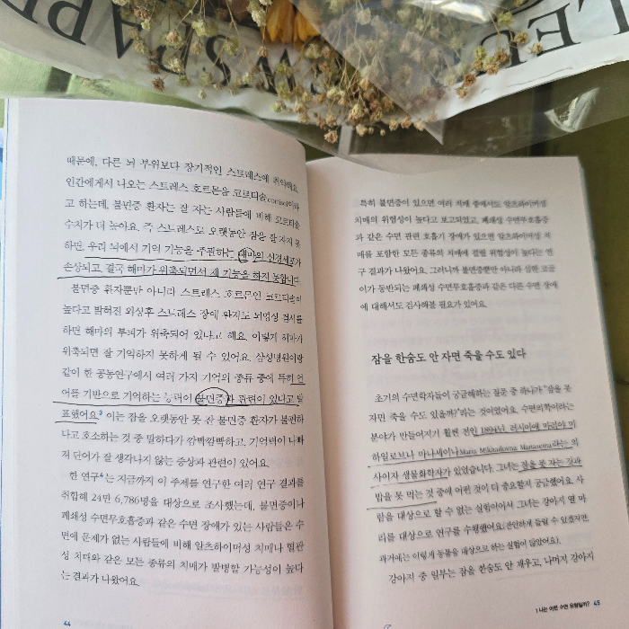 수면을 통해 몸 건강 뿐 아니라 마음 건강도 챙기기에 적극 추천하는 책이다.
