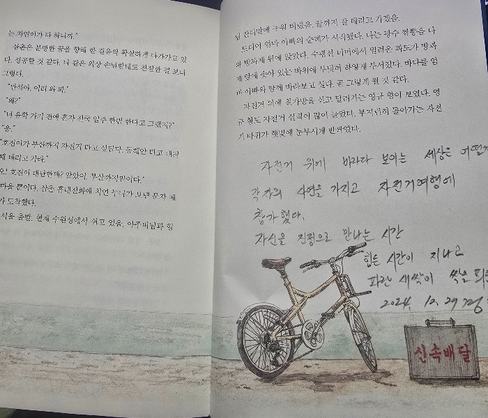 이 책은 자전거 여행을 통해 성장하는 사람들의 이야기를 담고 있다.