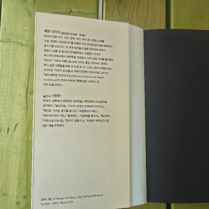 책을 읽다 인터넷 검색을 통해 작가를 검색해 보니 "제프 다이어가 곧 장르다"라는 평을 들을 정도로 독자적인 문학 세계를 구축하며 현대 영문학에서 가장 독창적이고 영향력 있는 작가 중 한 명으로 평가받고 있다는 사실을 알게 되었다.